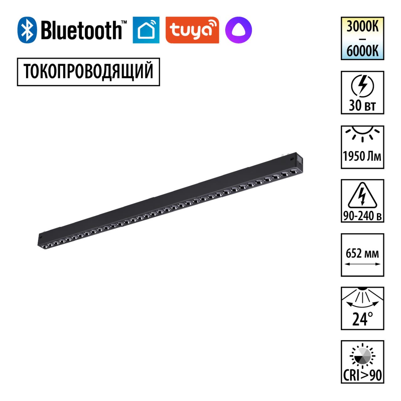 359935 PORT NT25 210 черный Трековый св-к диммир. со сменой цв.температуры, пульт ДУ/Tuya Smart Life IP20 LED 30W 3000-6000K 90-240V VECTOR