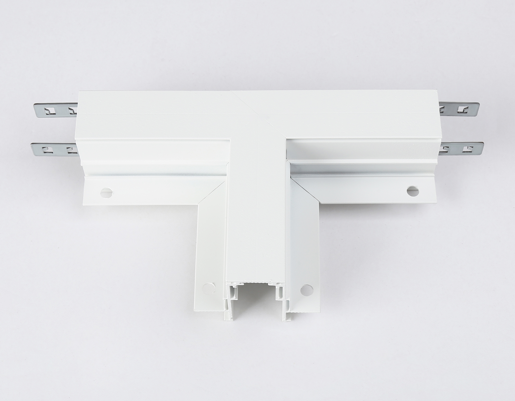 Коннектор T-образный для встраиваемого монтажа в гипсокартон 13mm. Предназначен для создания Т-образного соединения треков в одной плоскости. Гибкий коннектор питания арт. GL3638 приобретается отдельно. Соединители приобретаются отдельно GL3619.