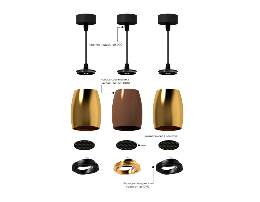 Коллекция DIY Spot предназначена для создания эксклюзивных светильников, под каждый стиль и интерьер. В многочисленных моделях данной коллекции вы сможете подобрать корпус, любого цвета, текстуры и размера, монтаж которого может быть как накладным, так и встраиваемым. К корпусу, вы сможете подобрать декоративные передние насадки, задние насадки, при помощи которых накладной светильник легко поменять на подвесной или трековый. Так же, в коллекцию DIY Spot входят коннекторы, которые дают возможнос