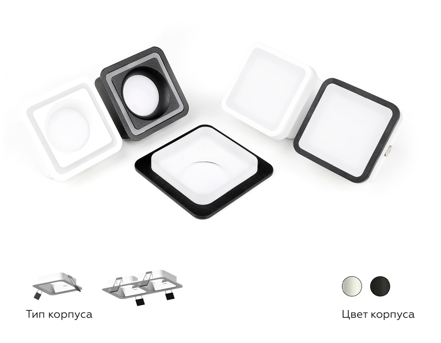Корпус светильника встраиваемый для насадок 70*70mm C7902 SBK черный песок 90*90*H32mm MR16 GU5.3