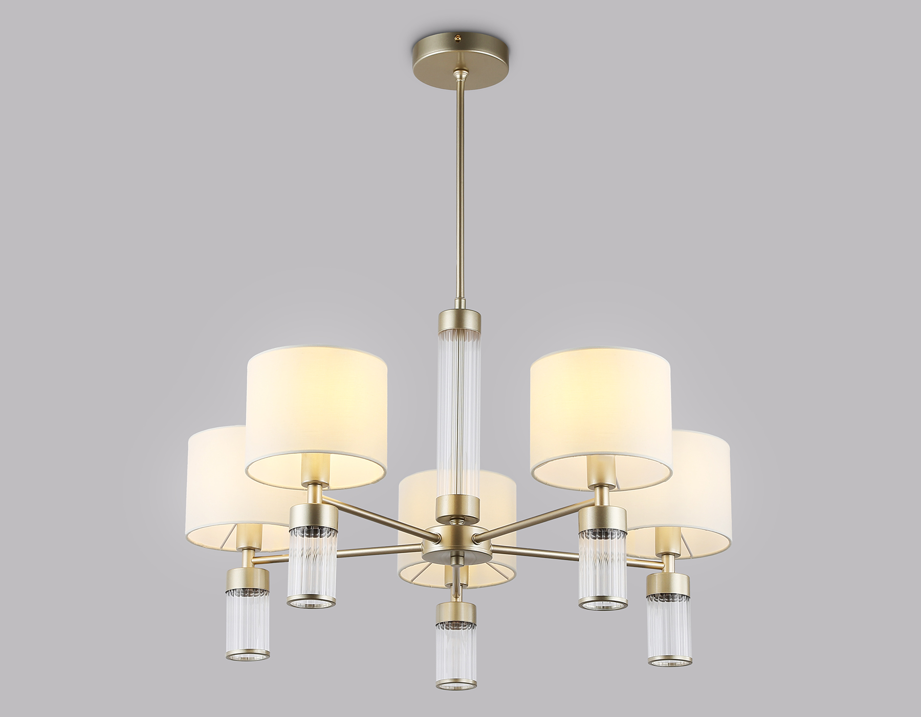 Люстра с абажурами на штанге LH71301/5 CGD/WH золото/белый E14/5 max 40W D680*740