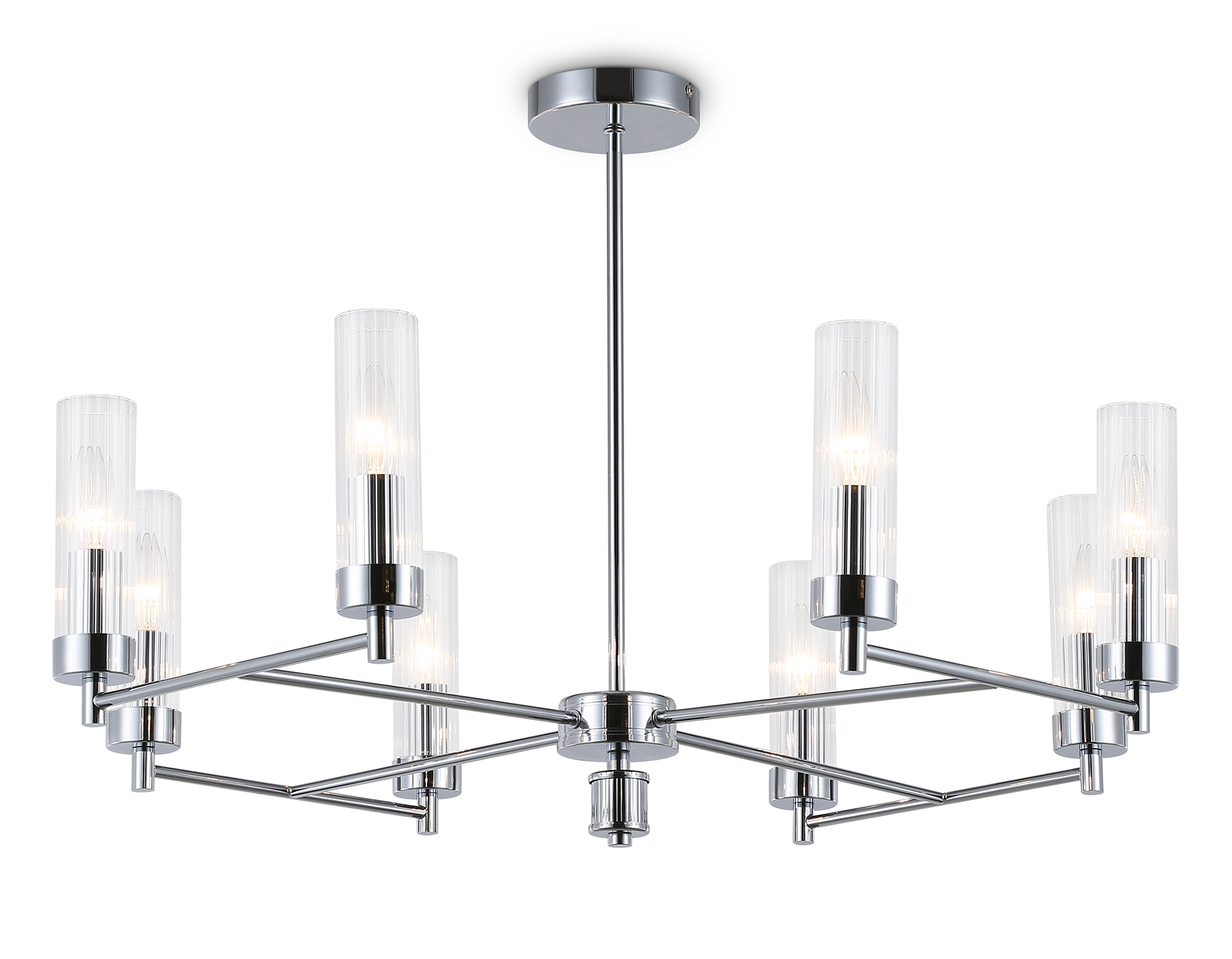 Подвесная люстра из коллекции HIGH LIGHT. Модель LH55152 представлена в стиле неоклассика. Люстра выполнена из металлического каркаса цвета хром и стеклянных прозрачных плафонов. Для данной модели подойдут лампы с цоколем Е14. Люстра будет прекрасным дополнением в любом помещении.