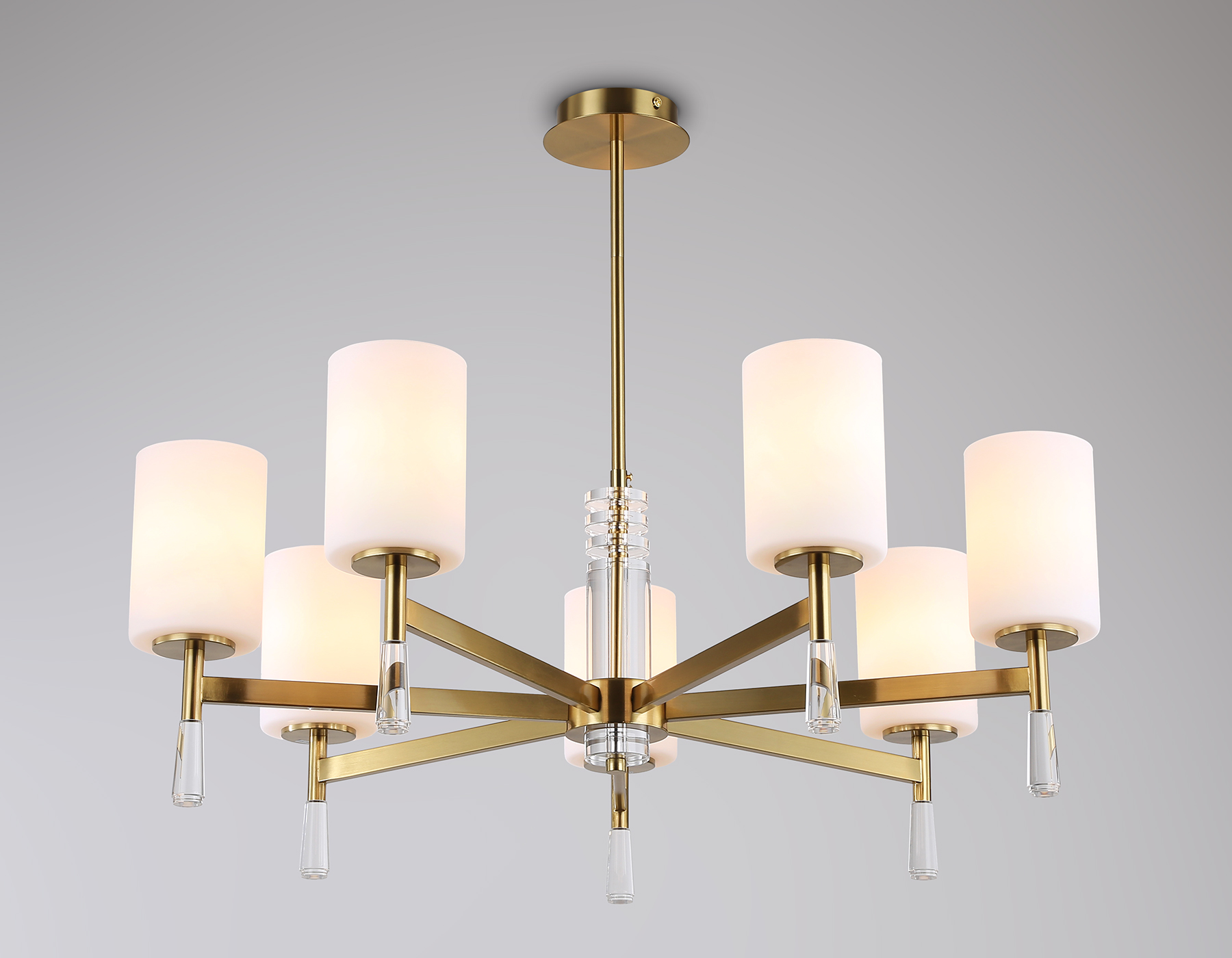 Подвесная люстра из коллекции HIGH LIGHT. Модель LH56263 представлена в стиле неоклассика. Люстра выполнена из металлического каркаса цвета латунь и стеклянных матовых плафонов. Для данной модели подойдут лампы с цоколем Е27. Люстра будет прекрасным дополнением в любом помещении.
