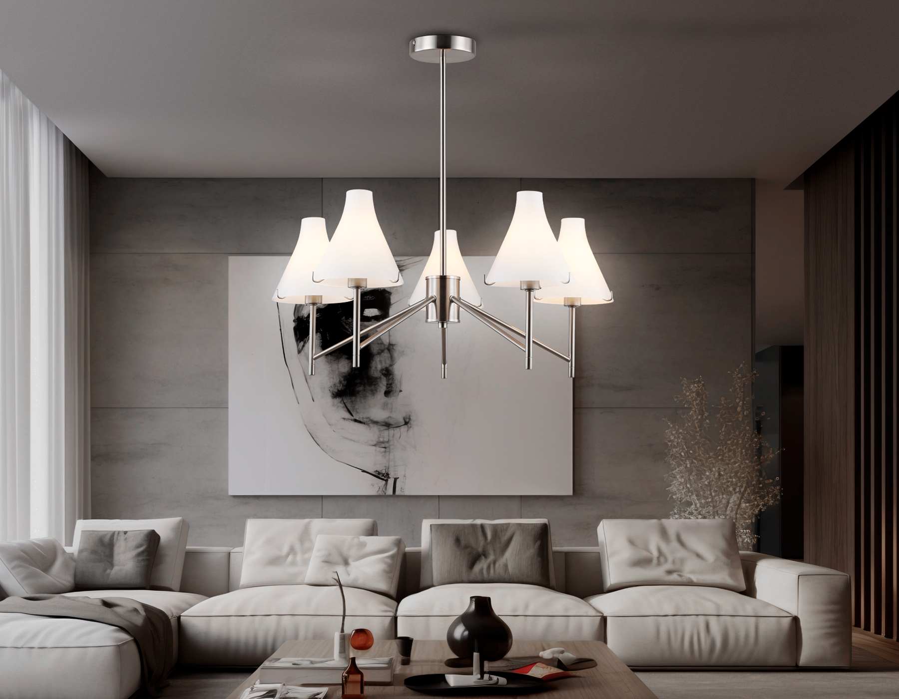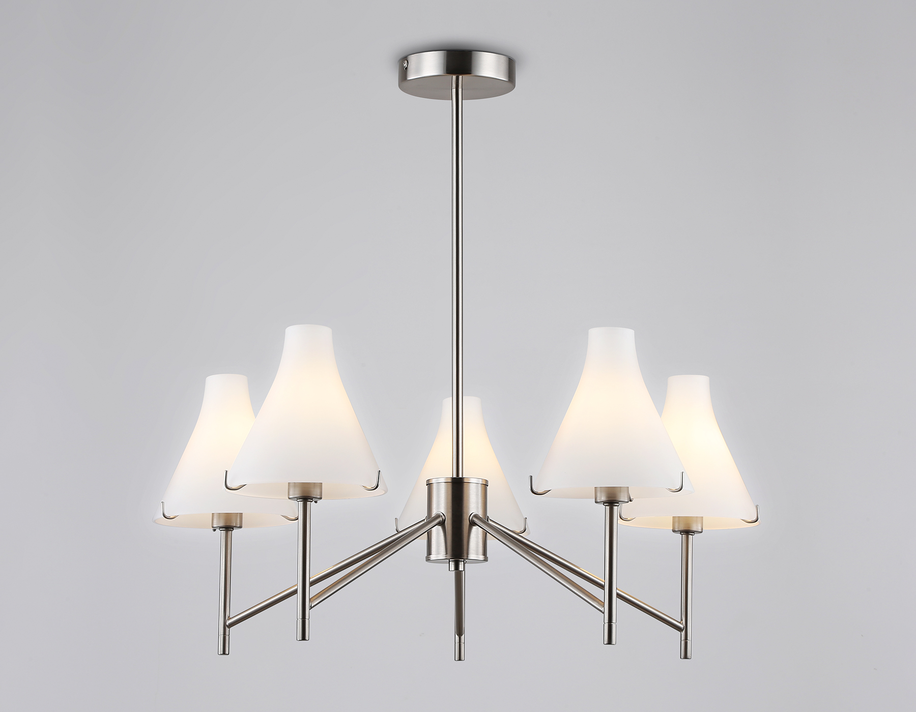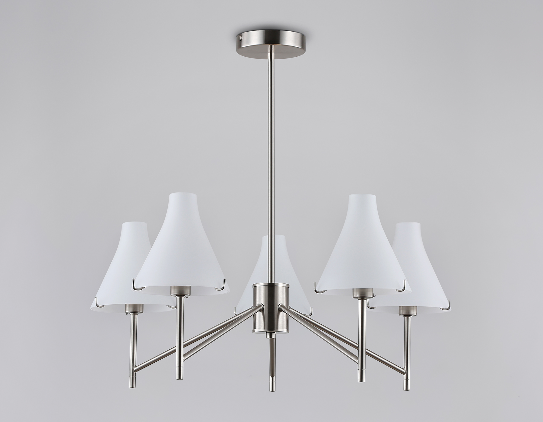 Подвесная люстра из коллекции HIGH LIGHT. Модель LH57123 представлена в стиле неоклассика. Люстра выполнена из металлического каркаса цвета никель и стеклянных матовых плафонов. Для данной модели подойдут лампы с цоколем Е14. Люстра будет прекрасным дополнением в любом помещении.