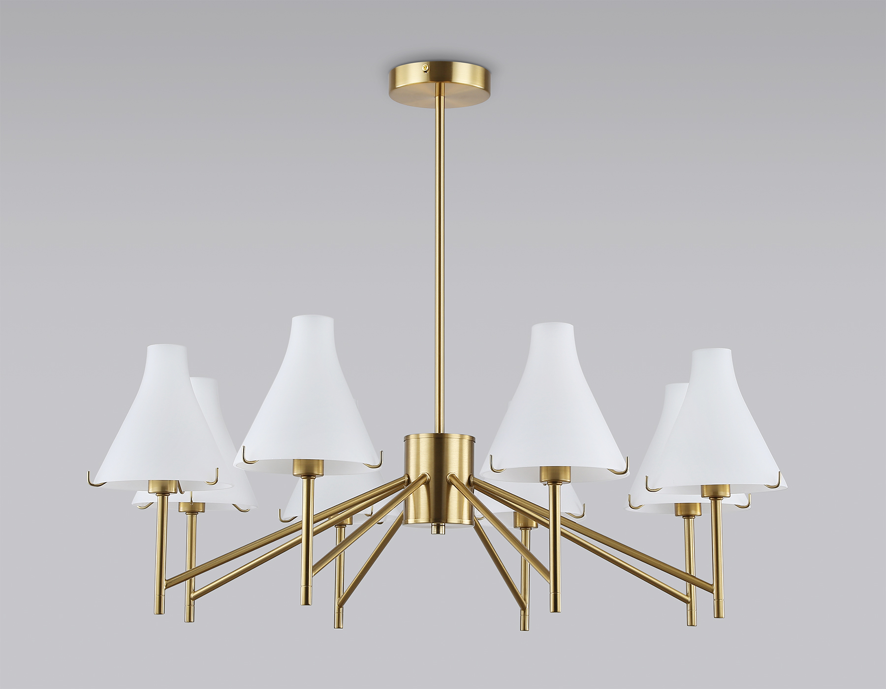 Люстра со стеклянными плафонами на штанге LH57135/8 BS/FR латунь/белый матовый E14/8 max 40W D800*650