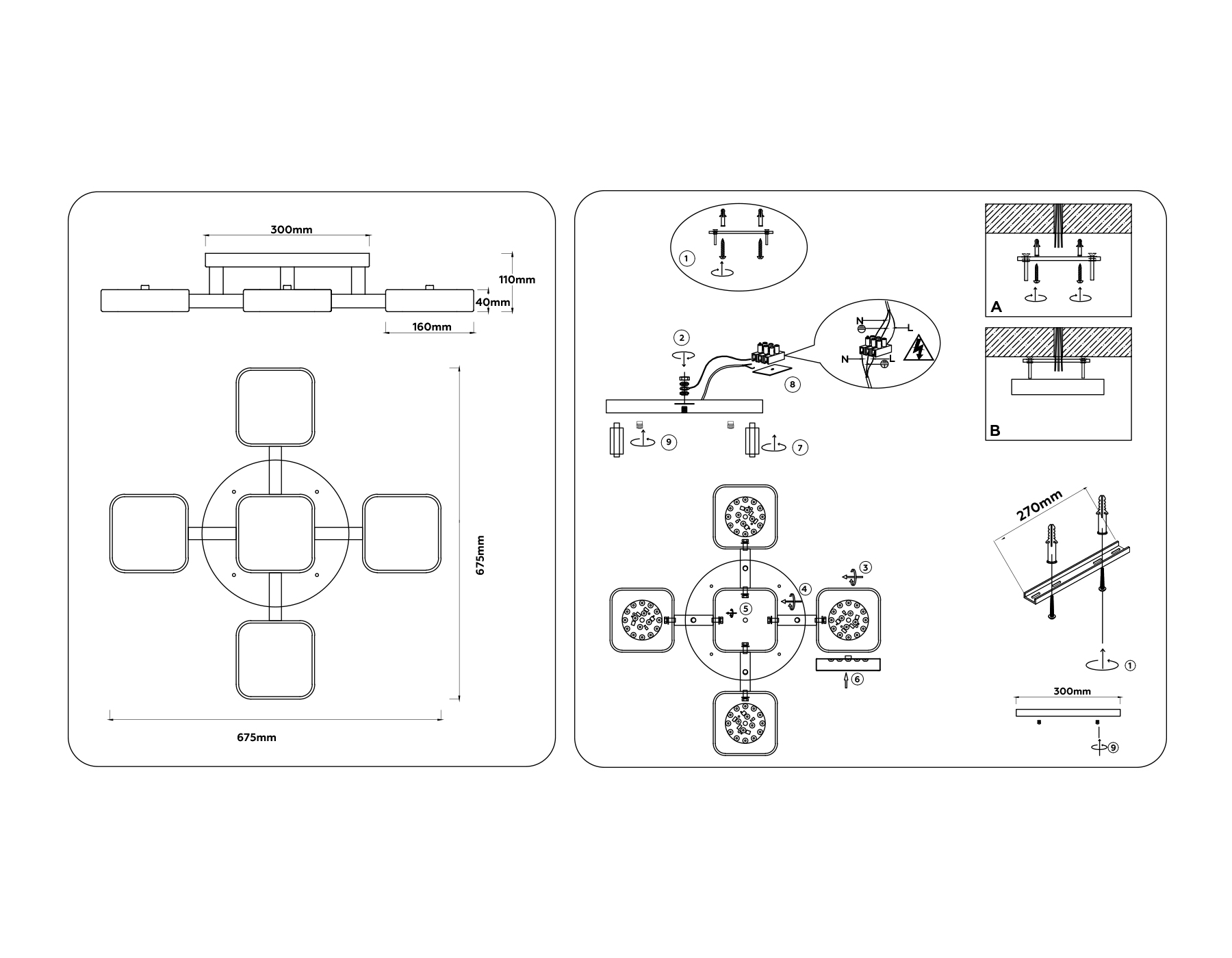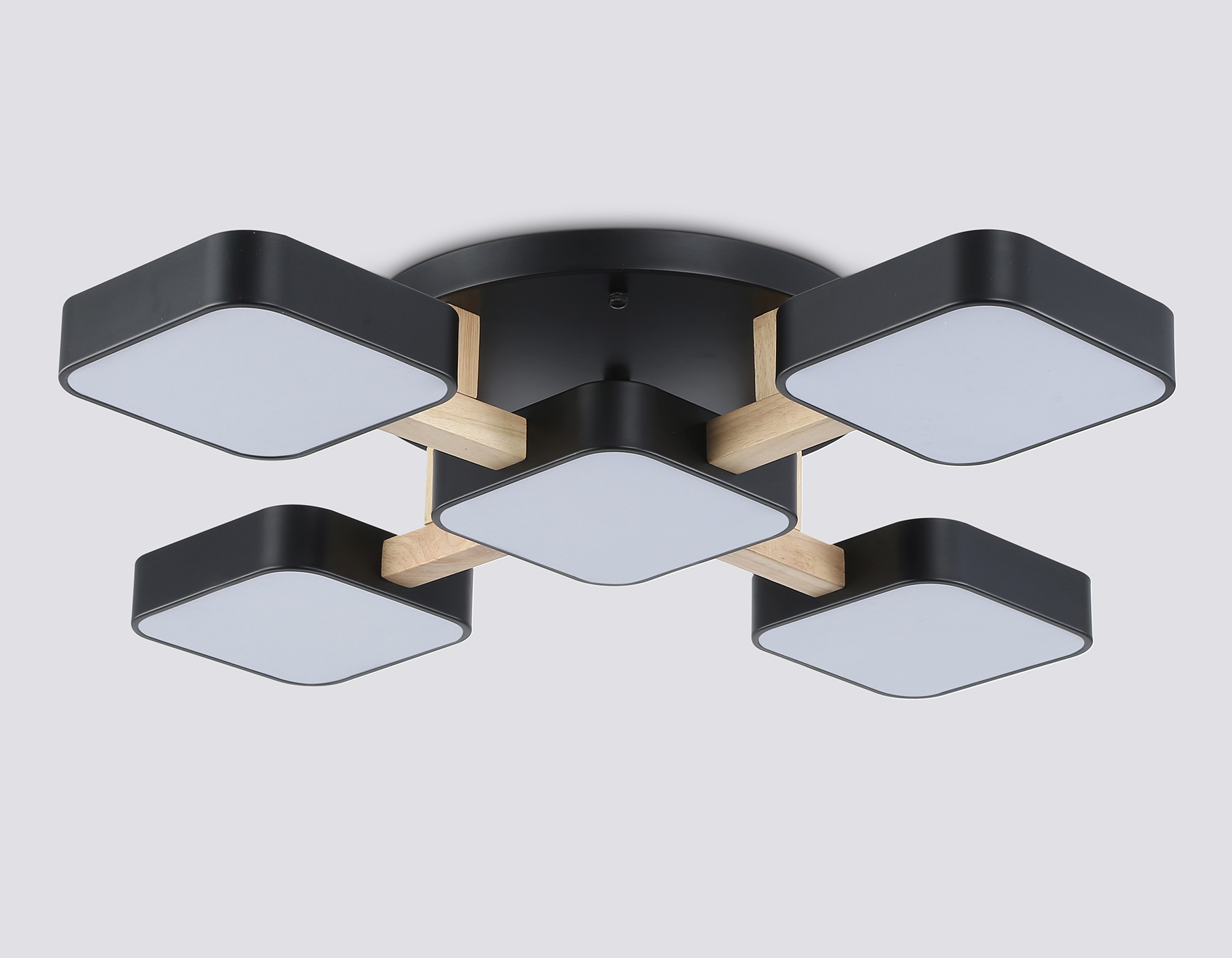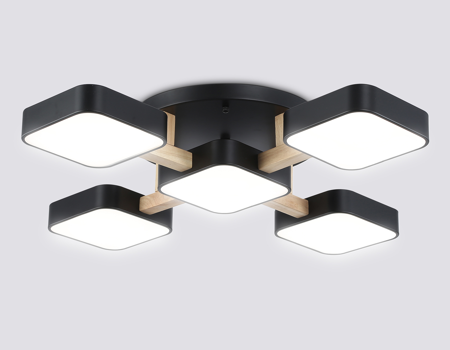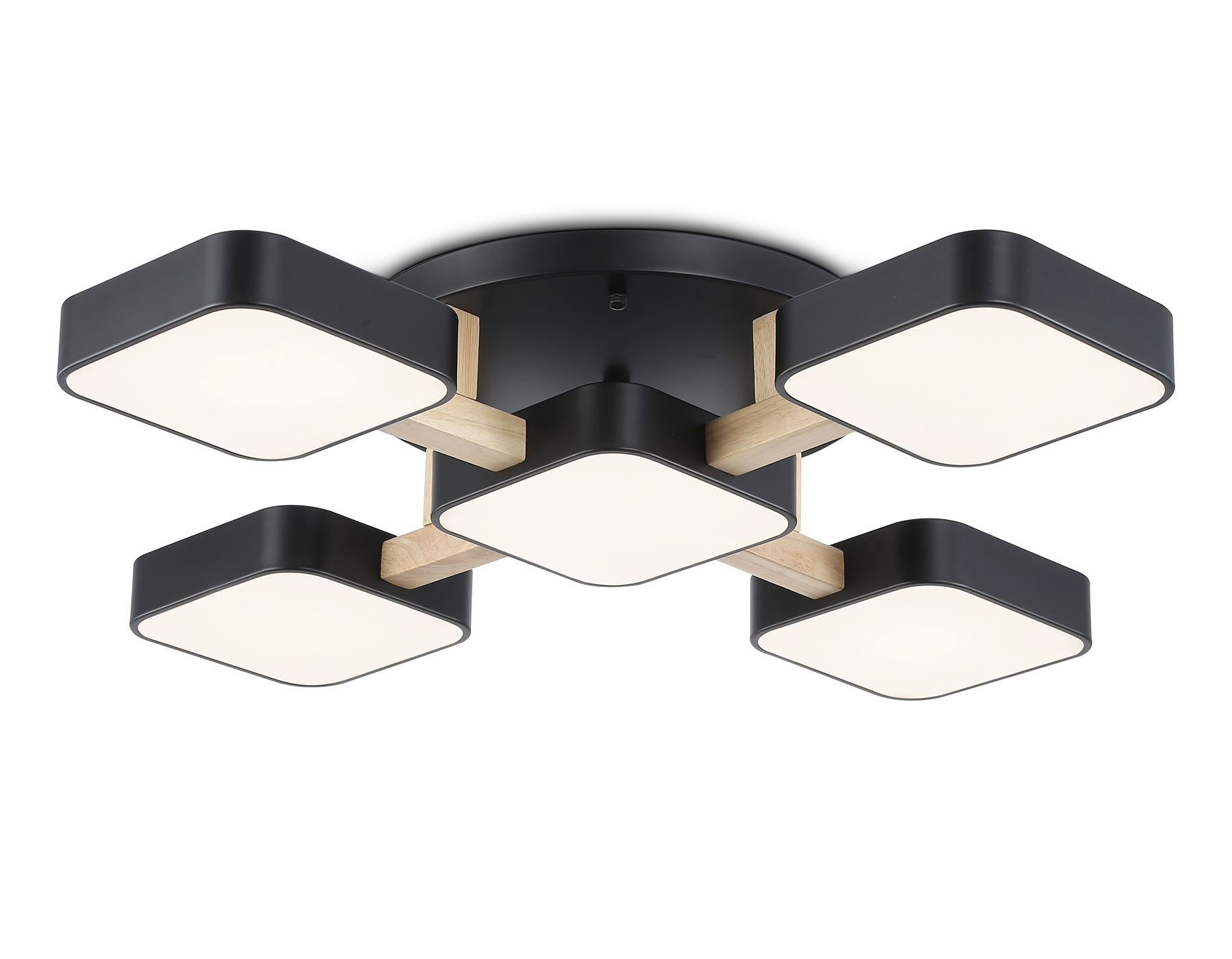 Люстра светодиодная на штанге FL4883/5 BK/WD черный/дерево 90W 3000-6000K 675*675*110 (без ПДУ)
