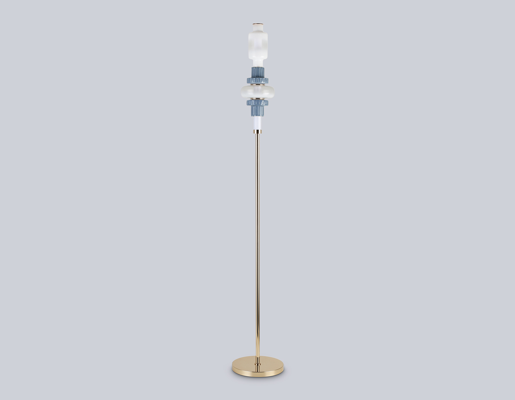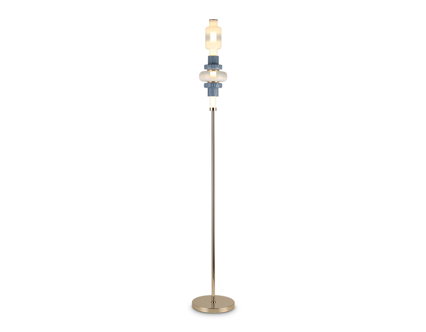 Напольный светодиодный светильник из коллекции HIGH LIGHT. Модель LH53132 представлена в стиле модерн. Светильник выполнен из металлического каркаса золотого цвета, плафонов из стекла белого градиента и декорирована элементами из серо-синего фарфора. Эта модель оснащена встроенными светодиодами, благодаря чему вы забудете о замене дополнительных ламп. Выключатель расположен на шнуре с вилкой. Светильник будет прекрасным дополнением в любом помещении.