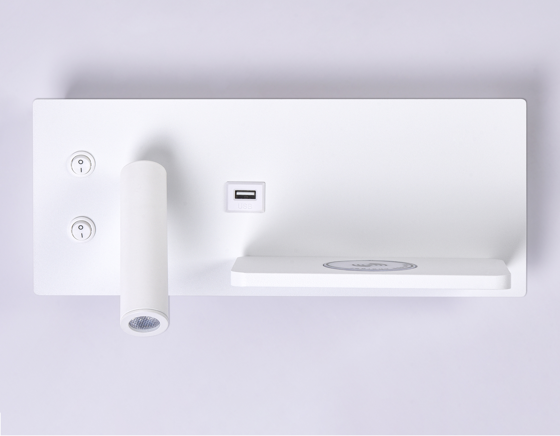 Настенный поворотный светодиодный светильник с выключателем, USB и беспроводной зарядкой FW2971 SWH белый песок LED 3000K 5W+3W 300*120*115