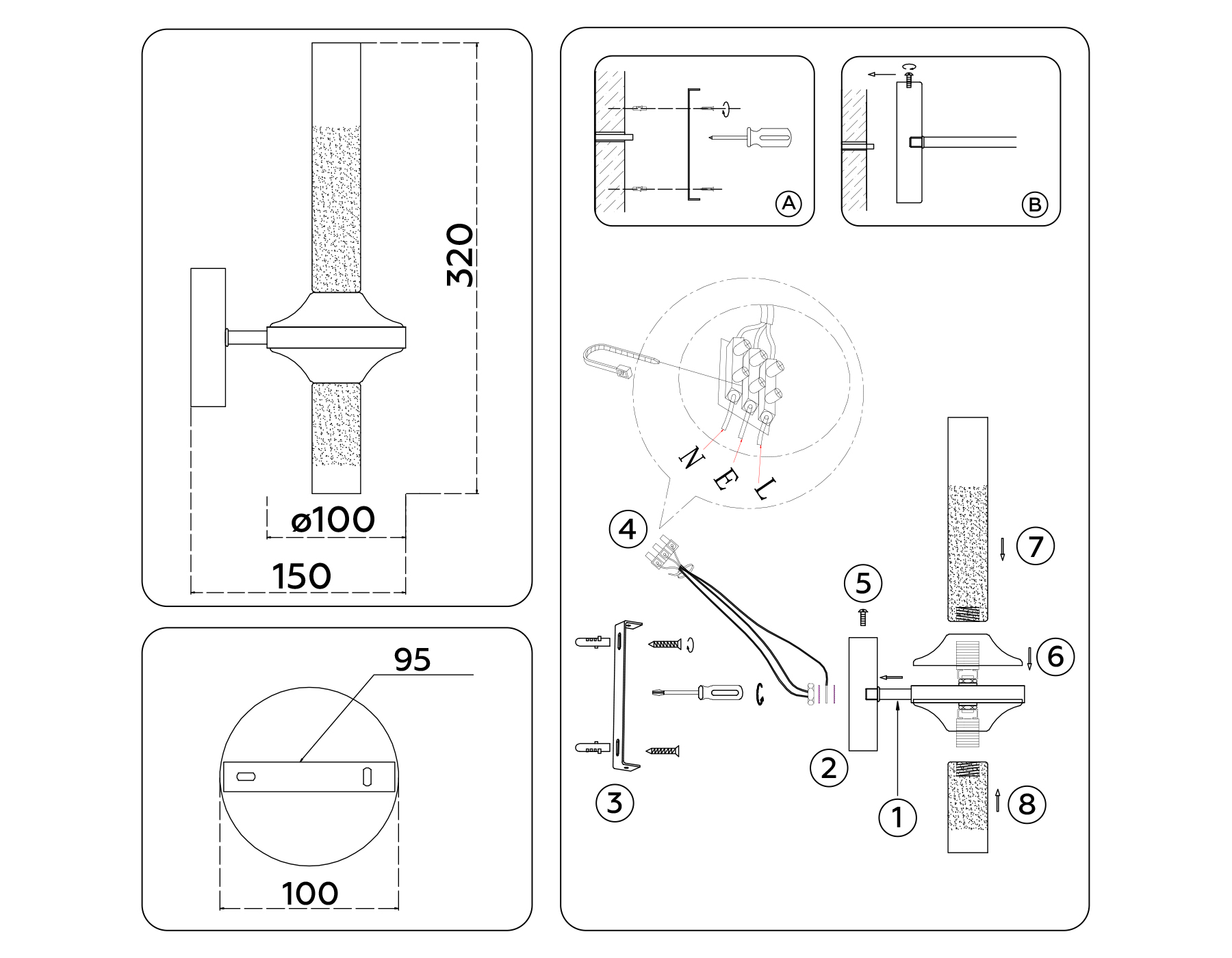 Настенный светильник LH55362/2 BS/CL латунь/прозрачный G9/2 max 30W 150*100*320