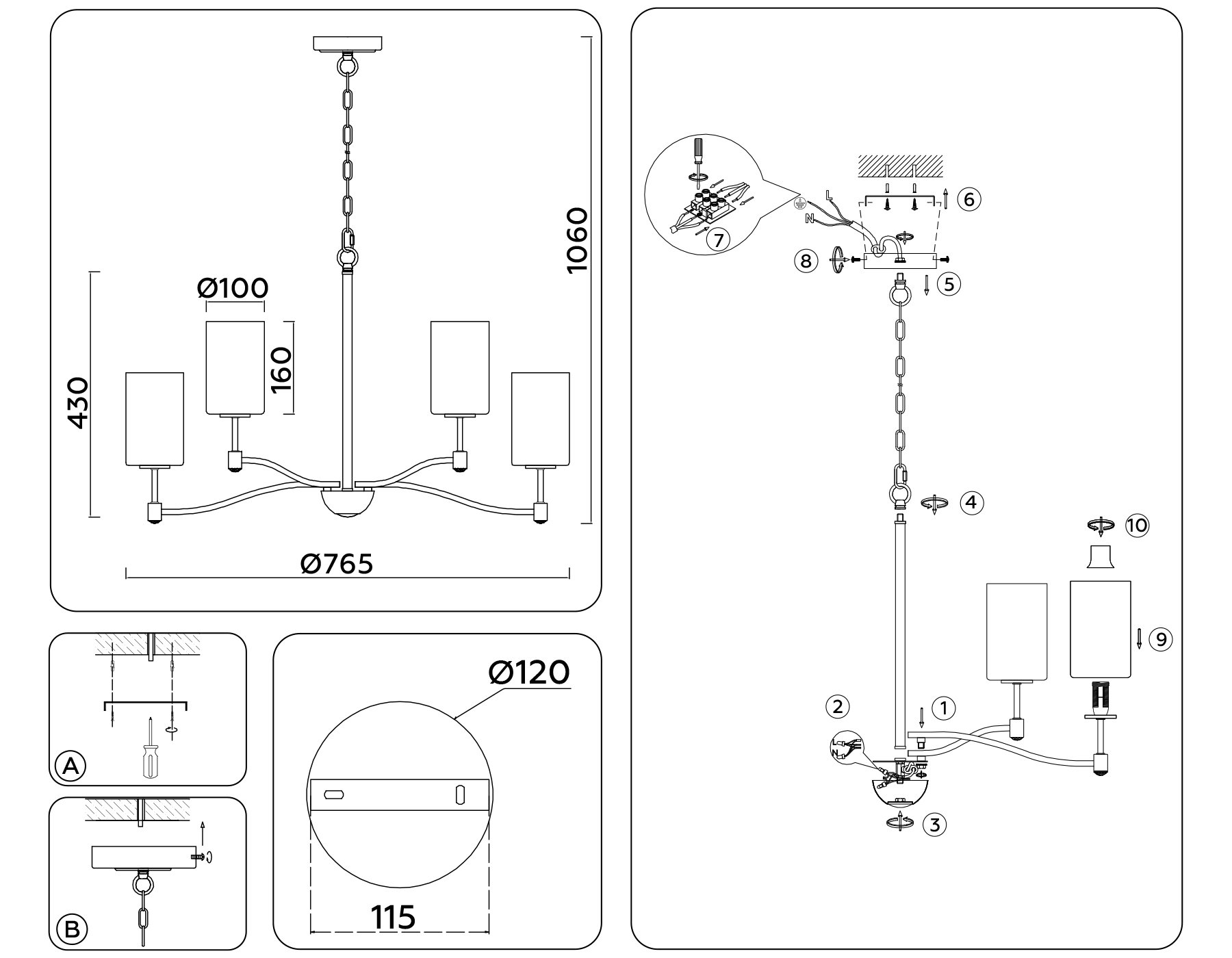 Подвесная люстра LH56054/6+3 BS/FR латунь/белый матовый E14*9 max 40W D765*1060