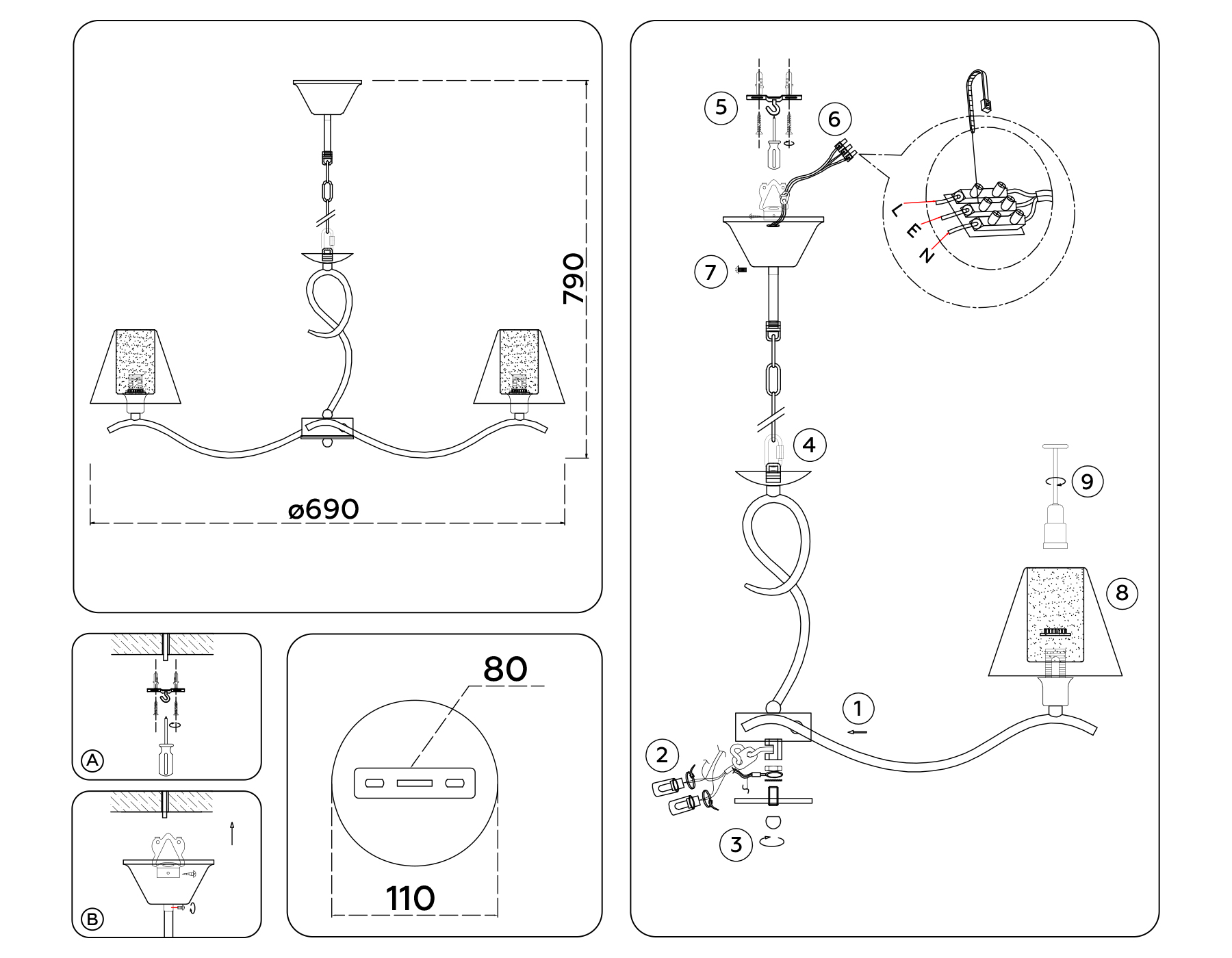 Подвесная люстра LH57081/5 SN/FR никель/белый матовый E14/5 max 40W D690*790