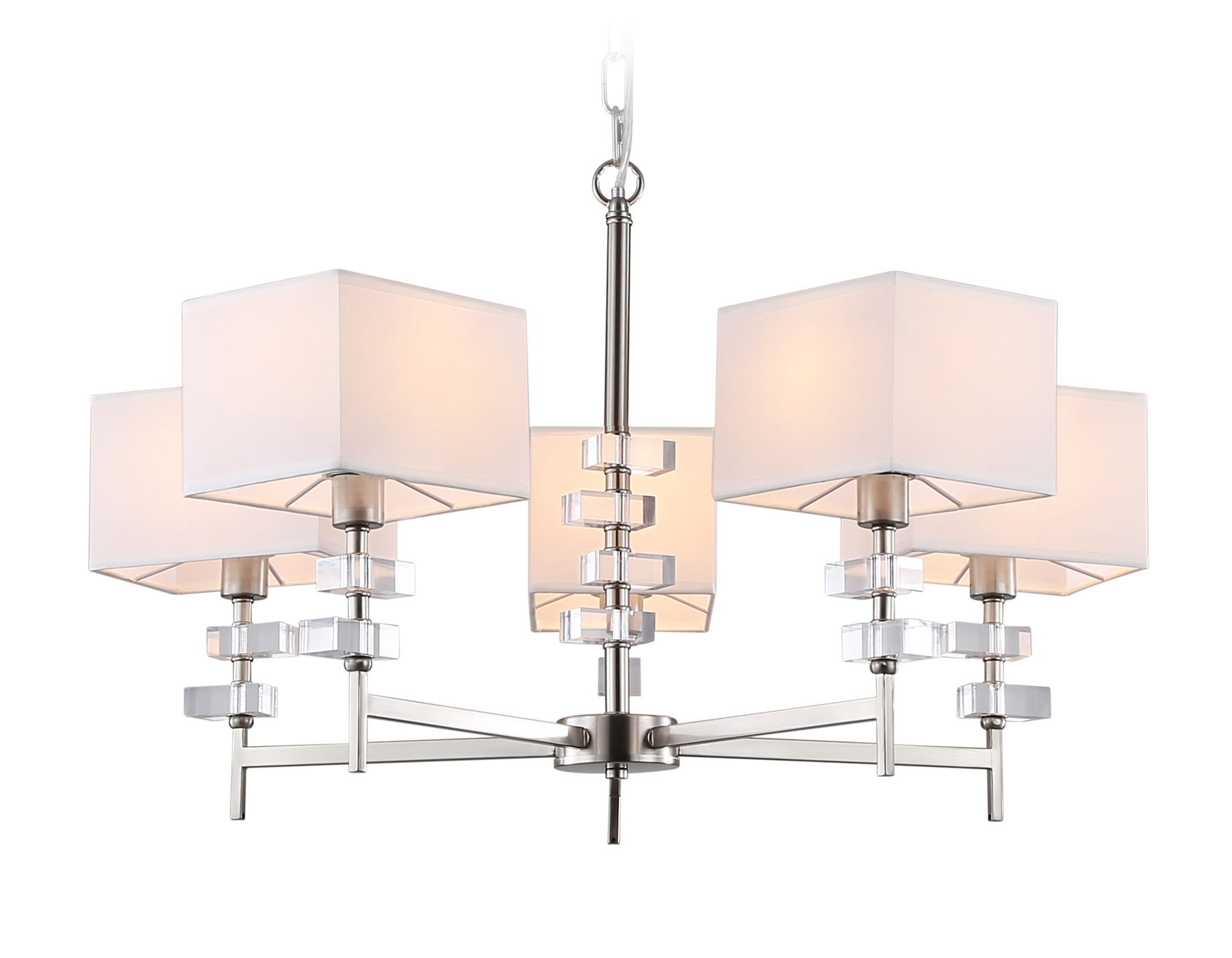 Подвесная люстра с абажурами из коллекции HIGH LIGHT. Модель LH71321 представлена в классическом стиле. Люстра выполнена из тканевых плафонов белого цвета и декорирована акриловыми элементами, каркас изготовлен из металла цвета никель. Для данной модели подойдут лампы с цоколем Е14. Люстра будет прекрасным дополнением в любом помещении.