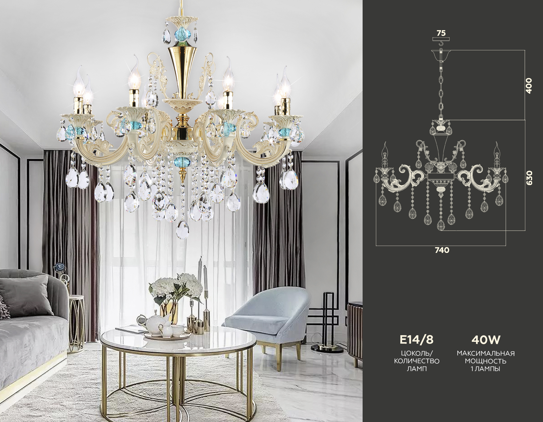 Подвесная люстра из коллекции TRADITIONAL. Модель TR4926 представлена в классическом стиле. Люстра выполнена из прозрачного хрусталя и металлического каркаса белого и золотого цвета. Для данной модели подойдут лампы с цоколем E14. Люстра будет прекрасным дополнением в любом помещении.
