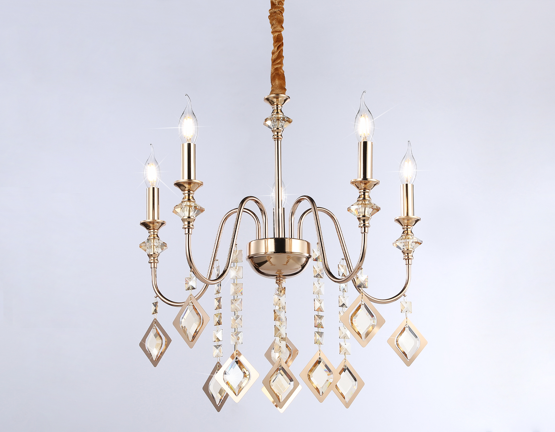 Подвесная люстра из коллекции TRADITIONAL. Модель TR4955 представлена в классическом стиле. Светильник выполнен из металлического каркаса золотого цвета и янтарного хрусталя. Для данной модели подойдут лампы с цоколем Е14. Люстра будет прекрасным дополнением в любом помещении.