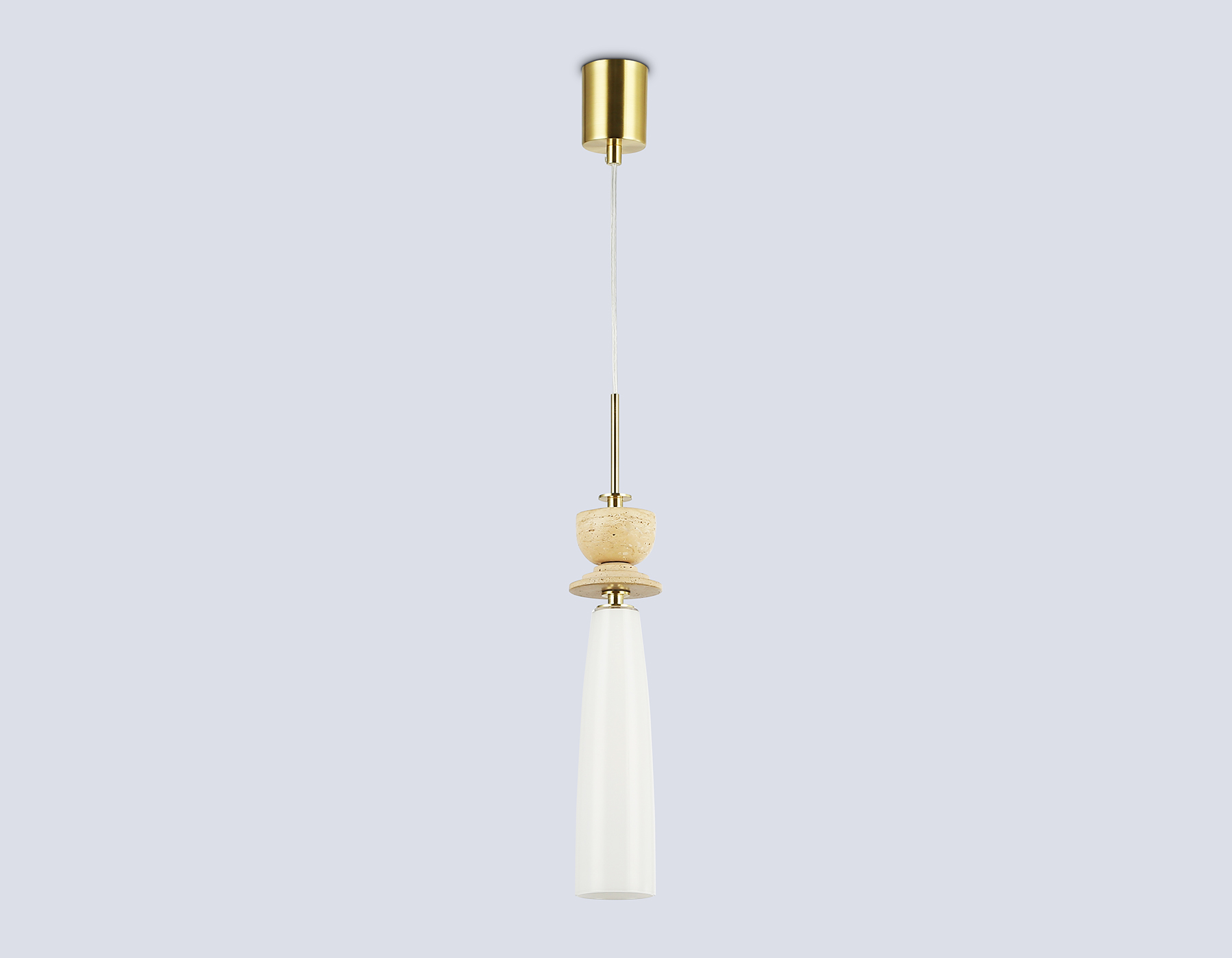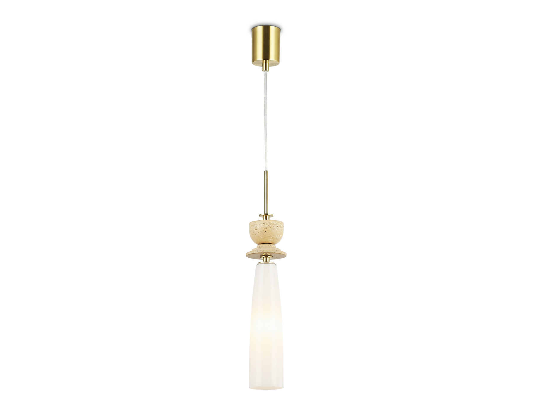Подвесной светильник с травертином LH75365 GD/WH золото/белый G9 max 28W D70*1490
