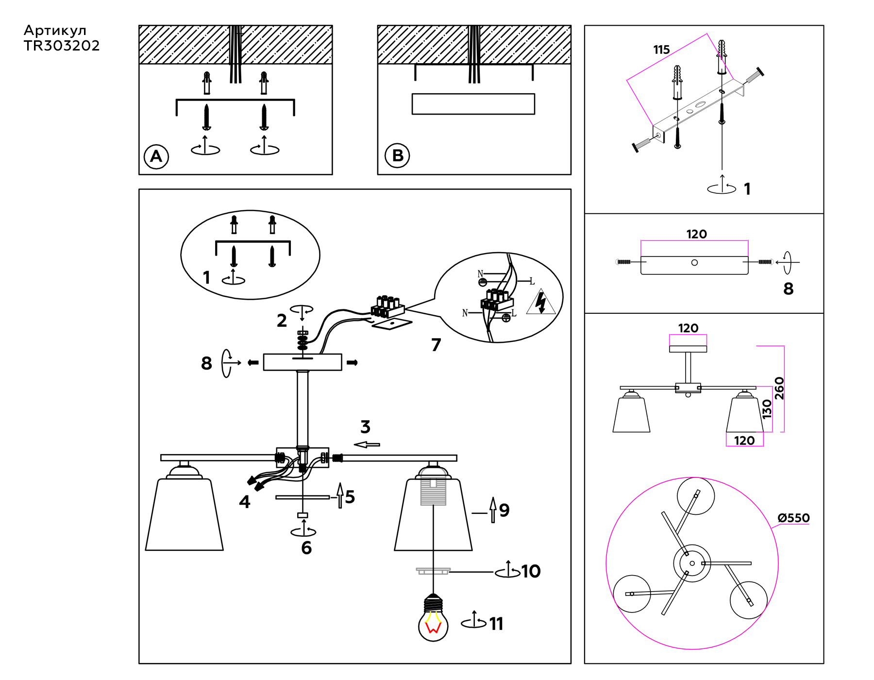 Подвесной светильник TR303202/3 WH/CH/FR белый/хром/белый матовый E27*3 max 60W D550*260