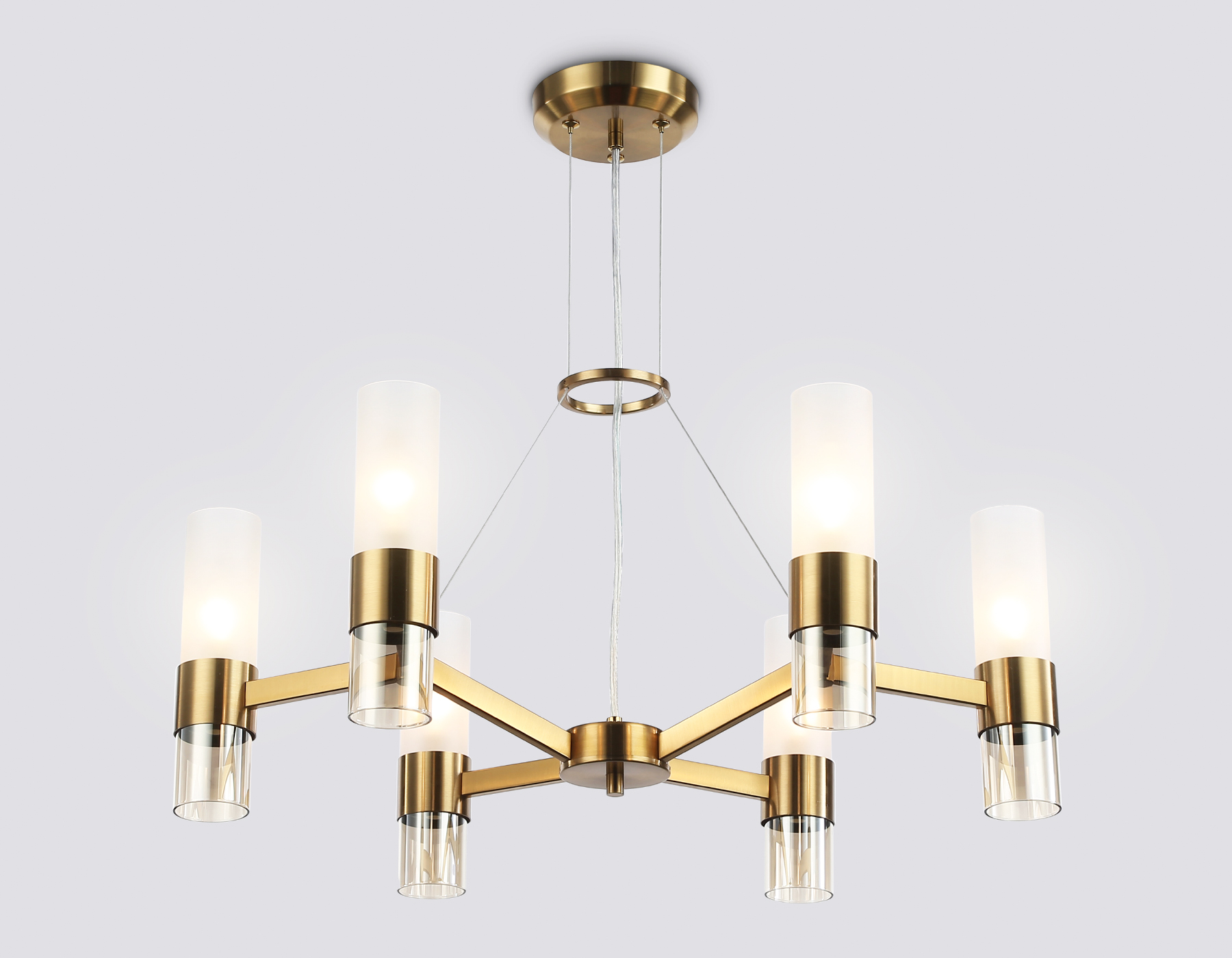 Подвесная люстра из коллекции HIGH LIGHT. Модель LH55114 представлена в стиле модерн. Люстра выполнена из стеклянных плафонов, белого матового и прозрачного янтарного цветов и металлического каркаса цвета латунь. Для данной модели подойдут лампы с цоколем Е14. Люстра будет прекрасным дополнением в любом помещении.