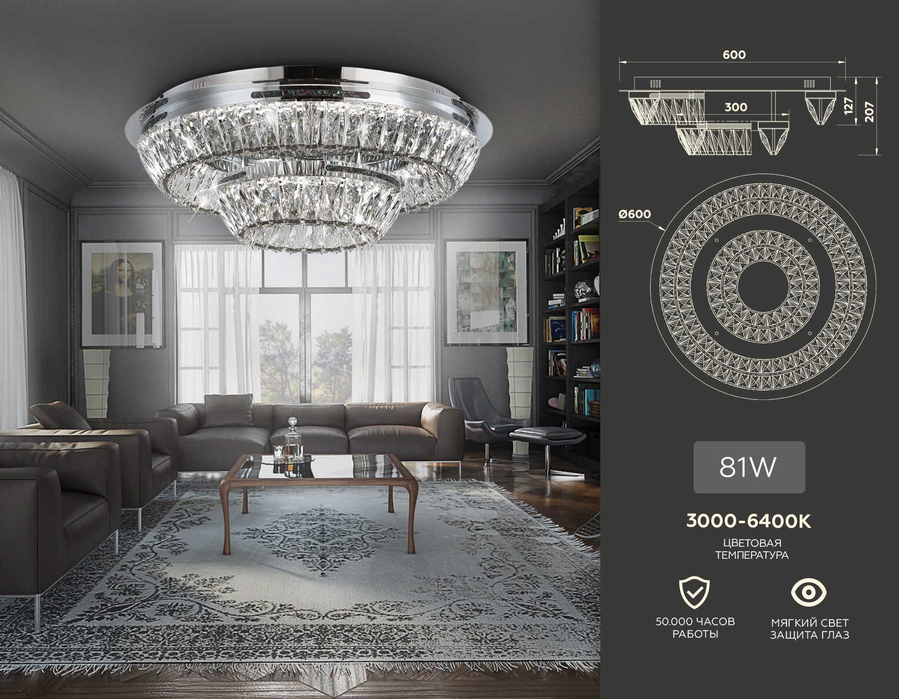 Потолочная светодиодная люстра с хрусталем из коллекции TRADITIONAL. Модель TR5029 представлена в стиле неоклассика. Светильник выполнен из превосходного прозрачного хрусталя, каркас изготовлен из металла цвета хром. Благодаря встроенным в конструкцию светодиодам, вы можете с уверенностью забыть о поиске или замене дополнительных ламп. Данная модель подходит для натяжных потолков и будет прекрасным дополнением в гостиной или спальне.