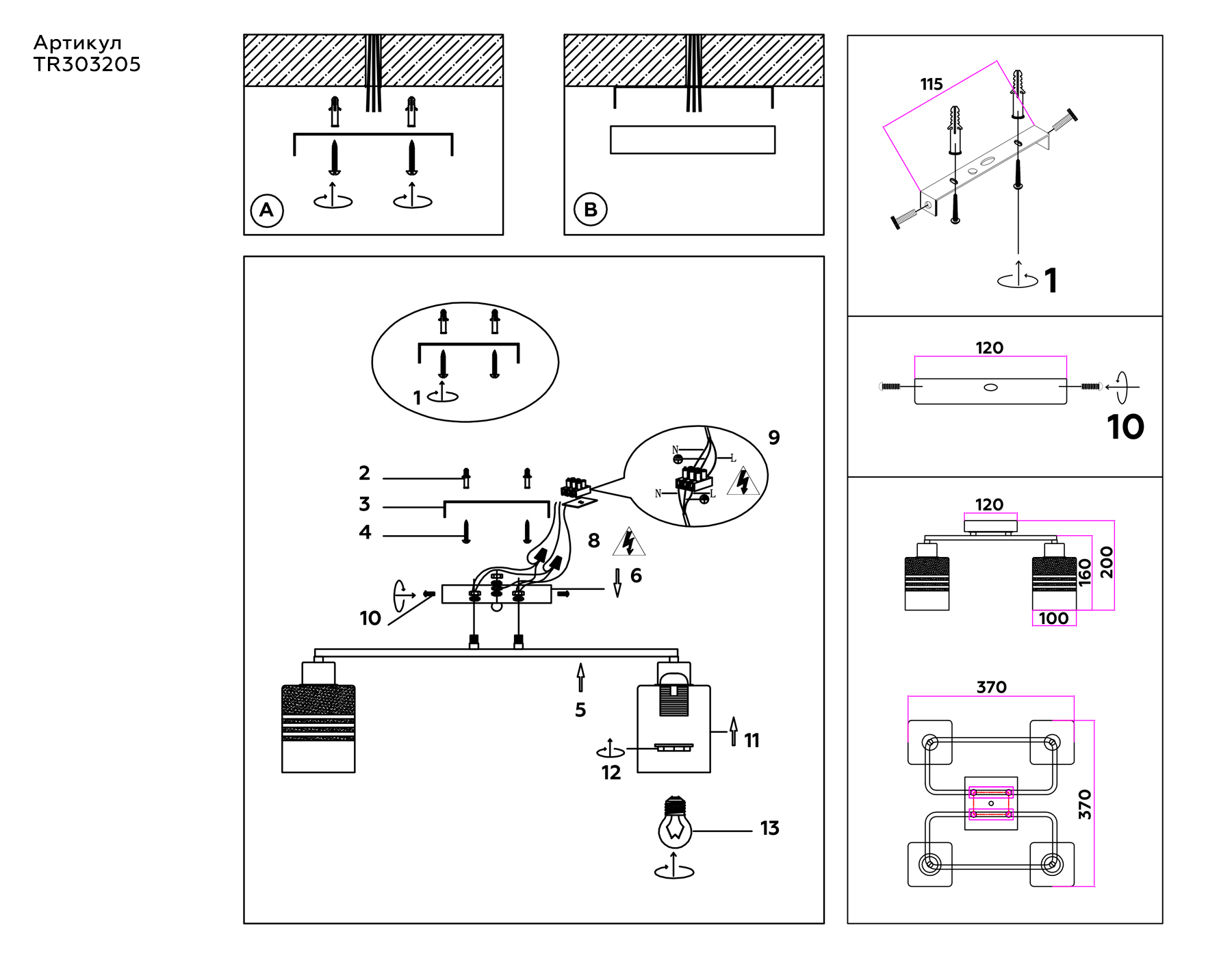 Потолочный светильник TR303205/4 WH/CH/SM/FR белый/хром/дымчатый/белый матовый E27*4 max 60W 370*370*200