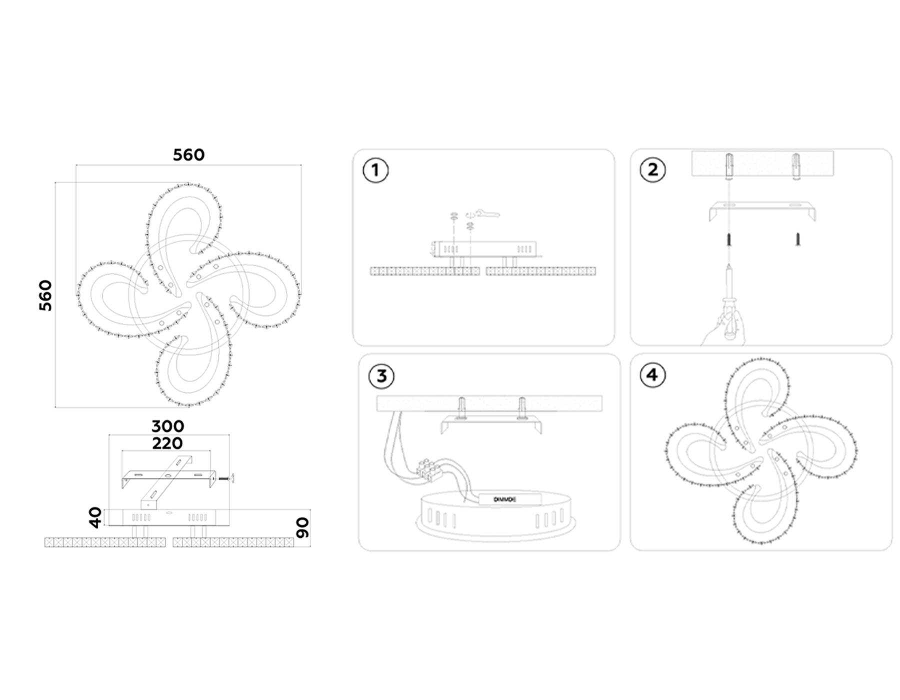 Потолочный светодиодный светильник с пультом FA1702/4 WH/CH белый/хром 121W 3000K-6400K 560*560*90 (ПДУ РАДИО 2.4G)