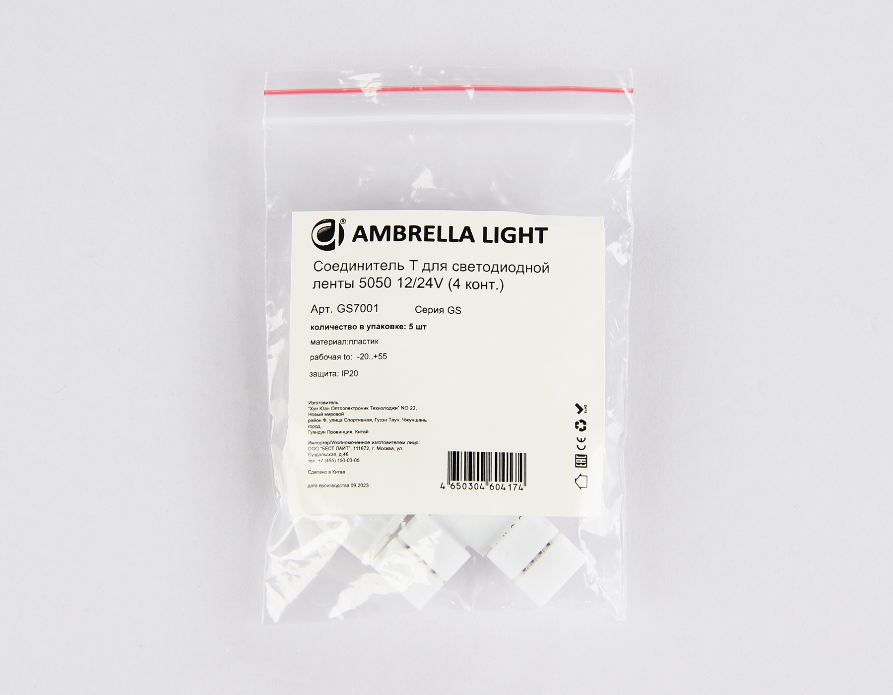 Соединитель T для светодиодной ленты 5050 12/24V (4 конт.) GS7001 (5шт) GS7001 Соединитель T 5050 12/24V (4 конт.) (5шт)