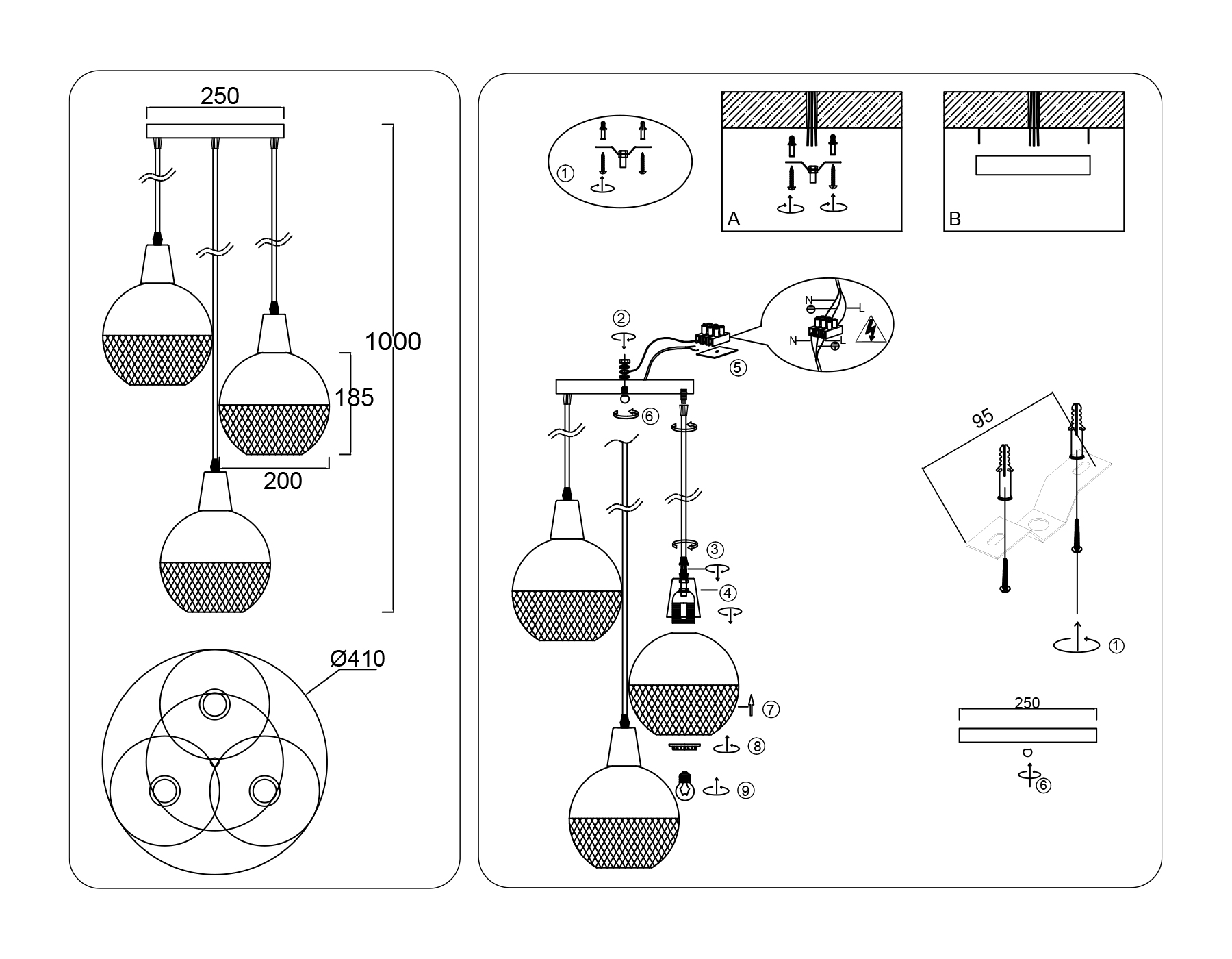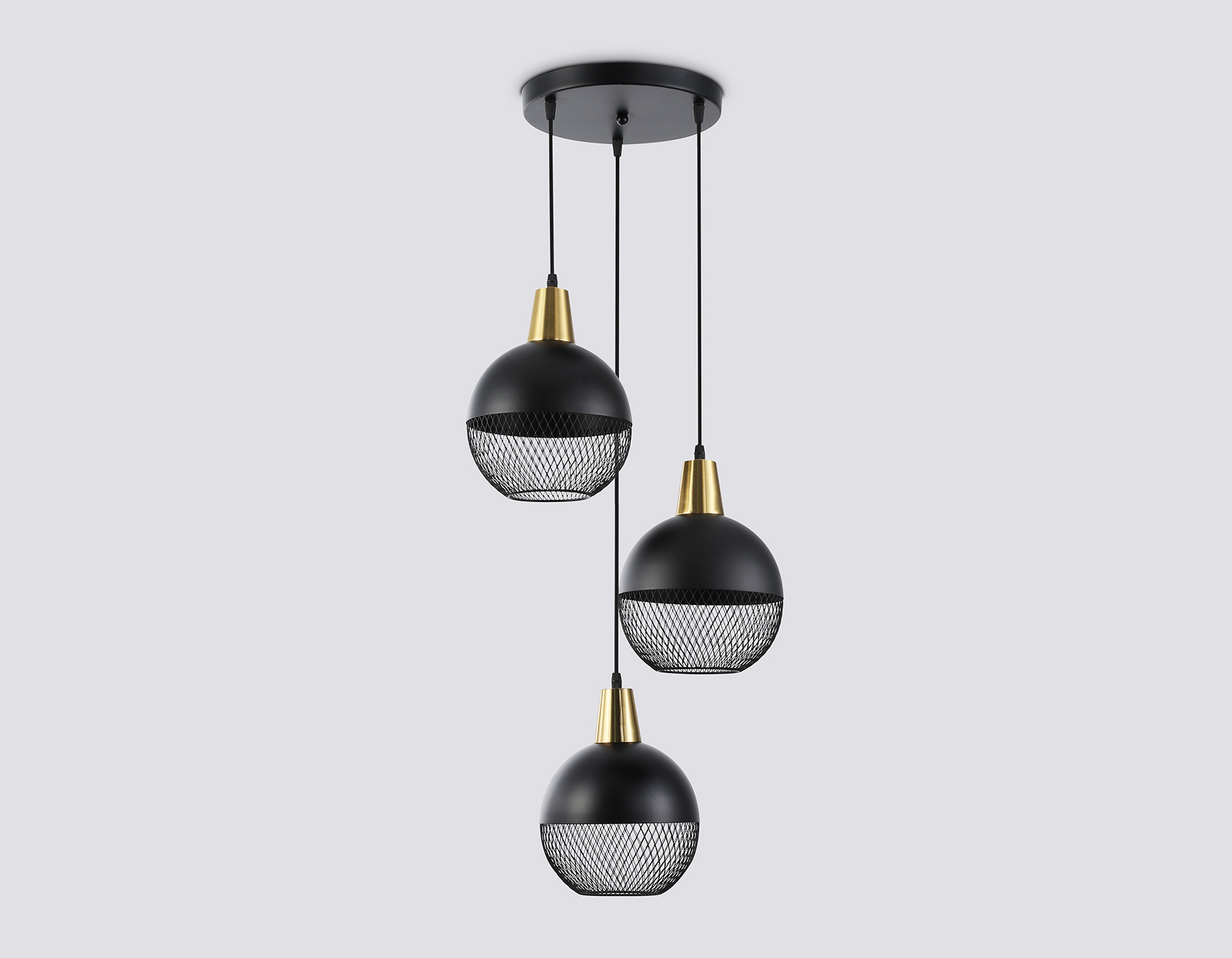 Светильник подвесной TR8505/3 BK/CP черный/медь E27/3 max 60W D410*1000