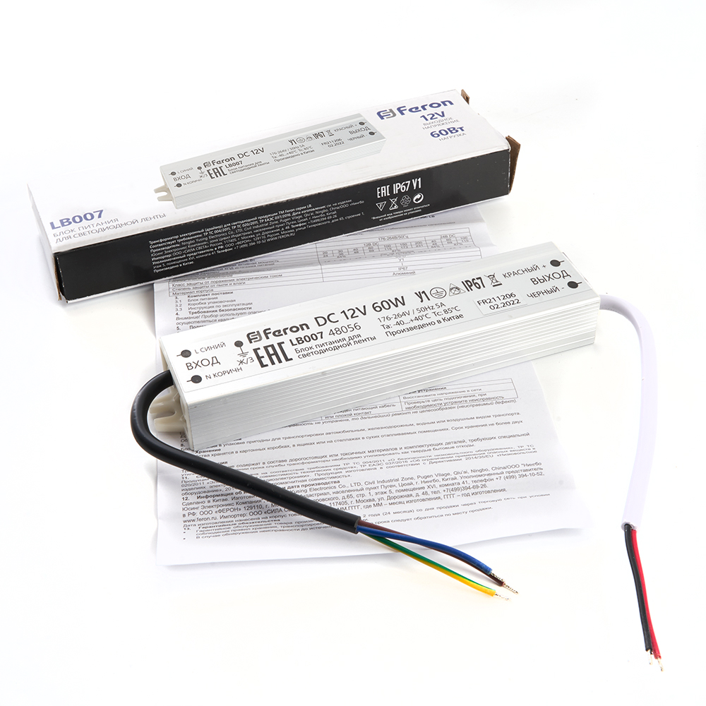 Главная страница / Каталог товаров / Трансформатор электронный для светодиодной ленты 60W 12V IP67 (драйвер), LB007 FERON