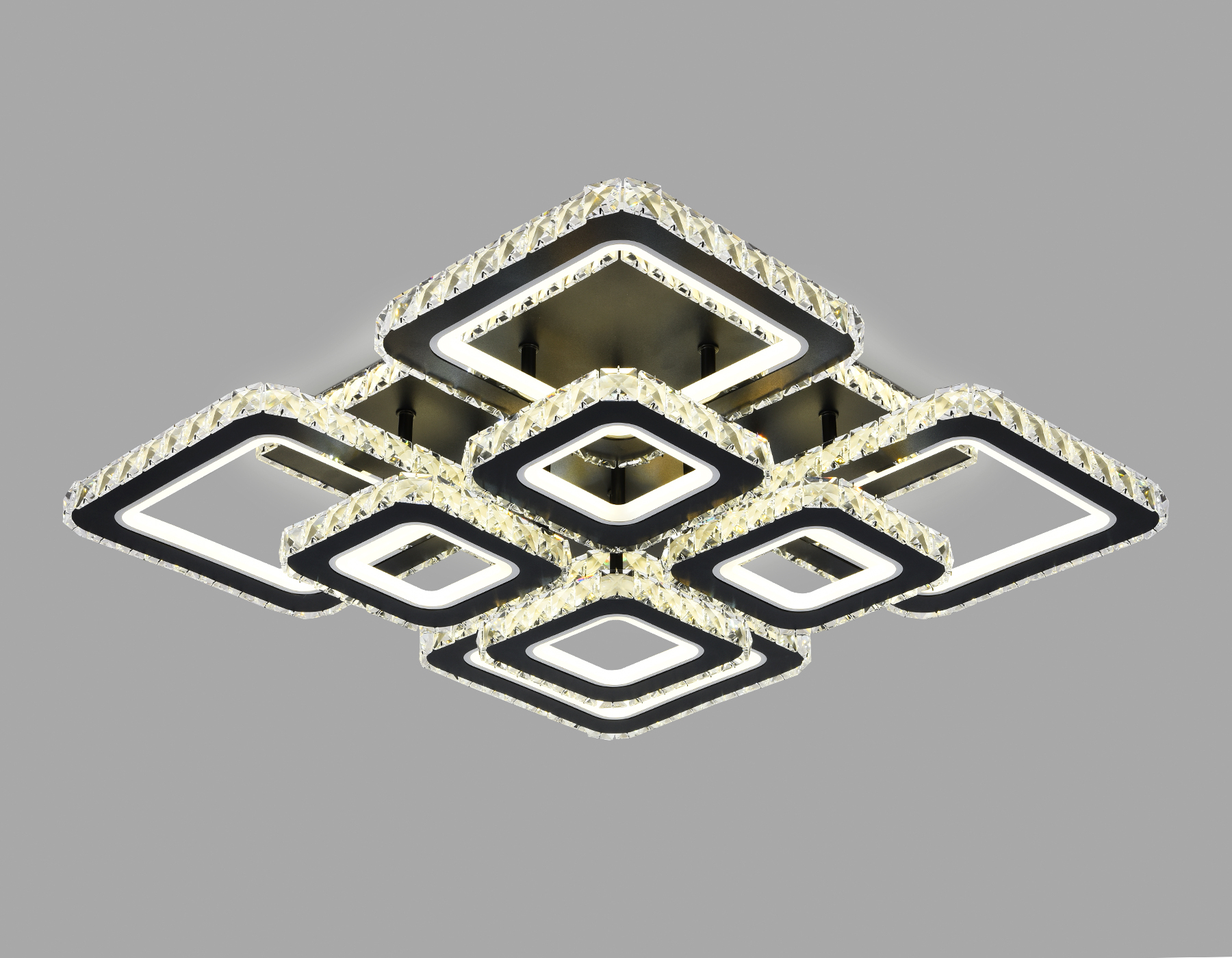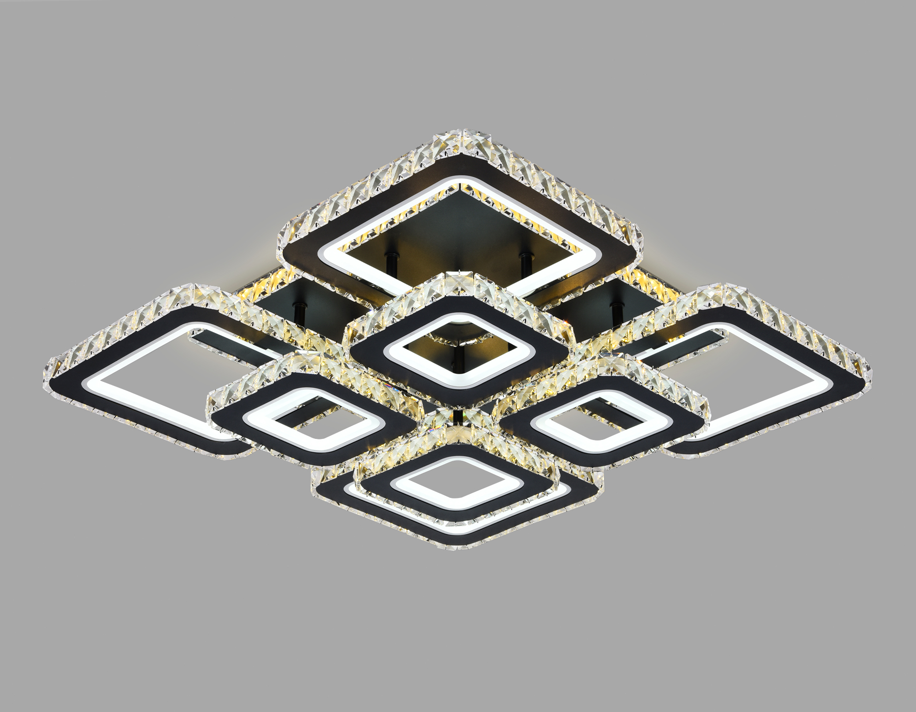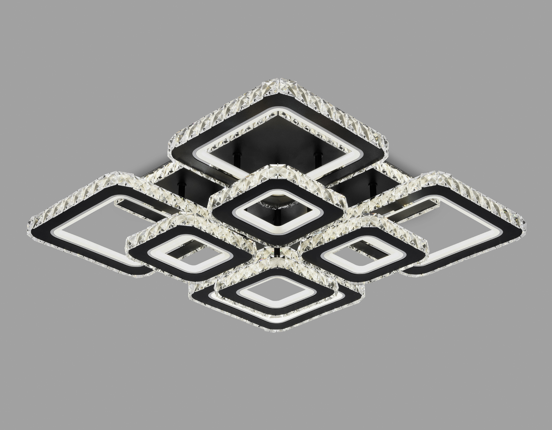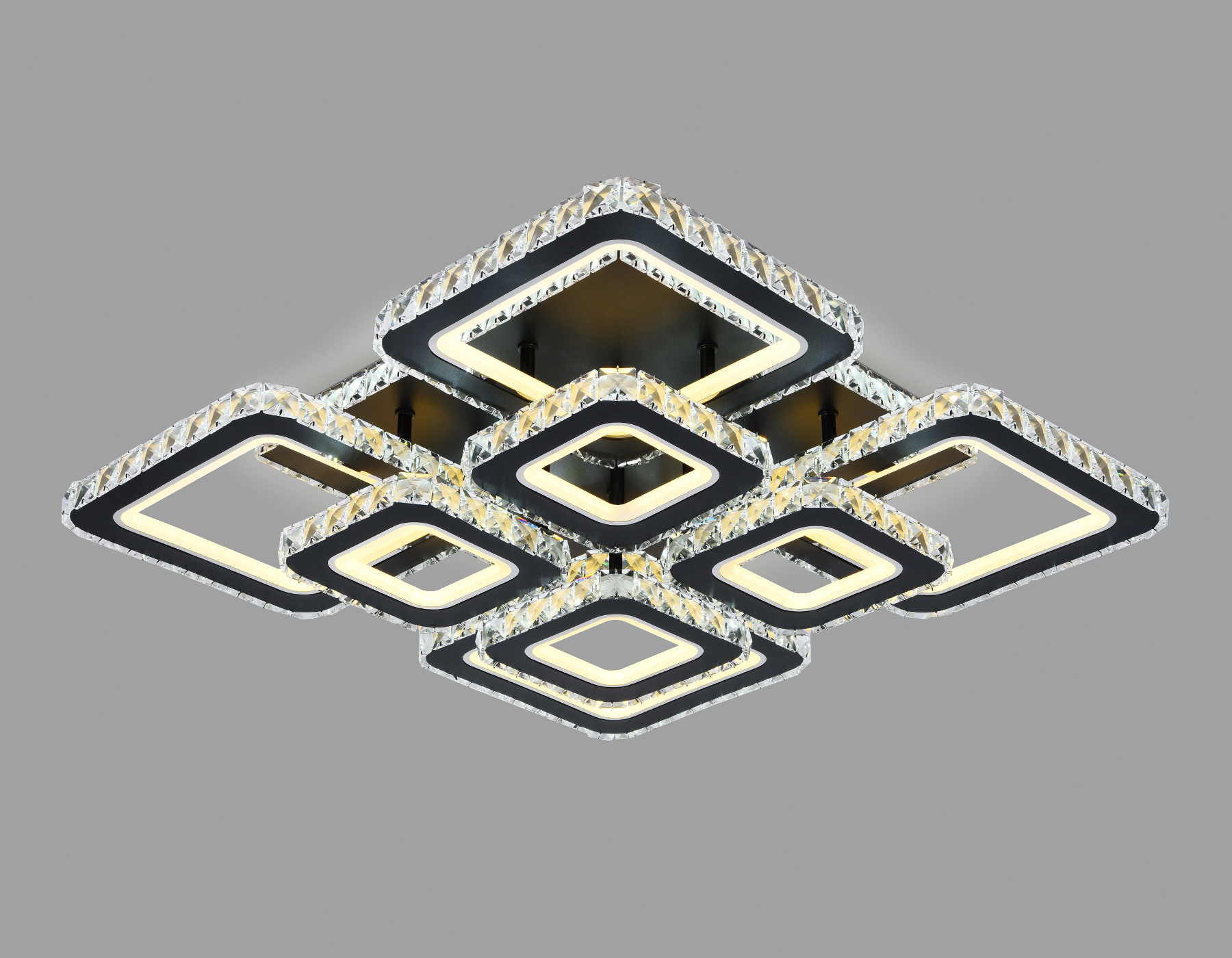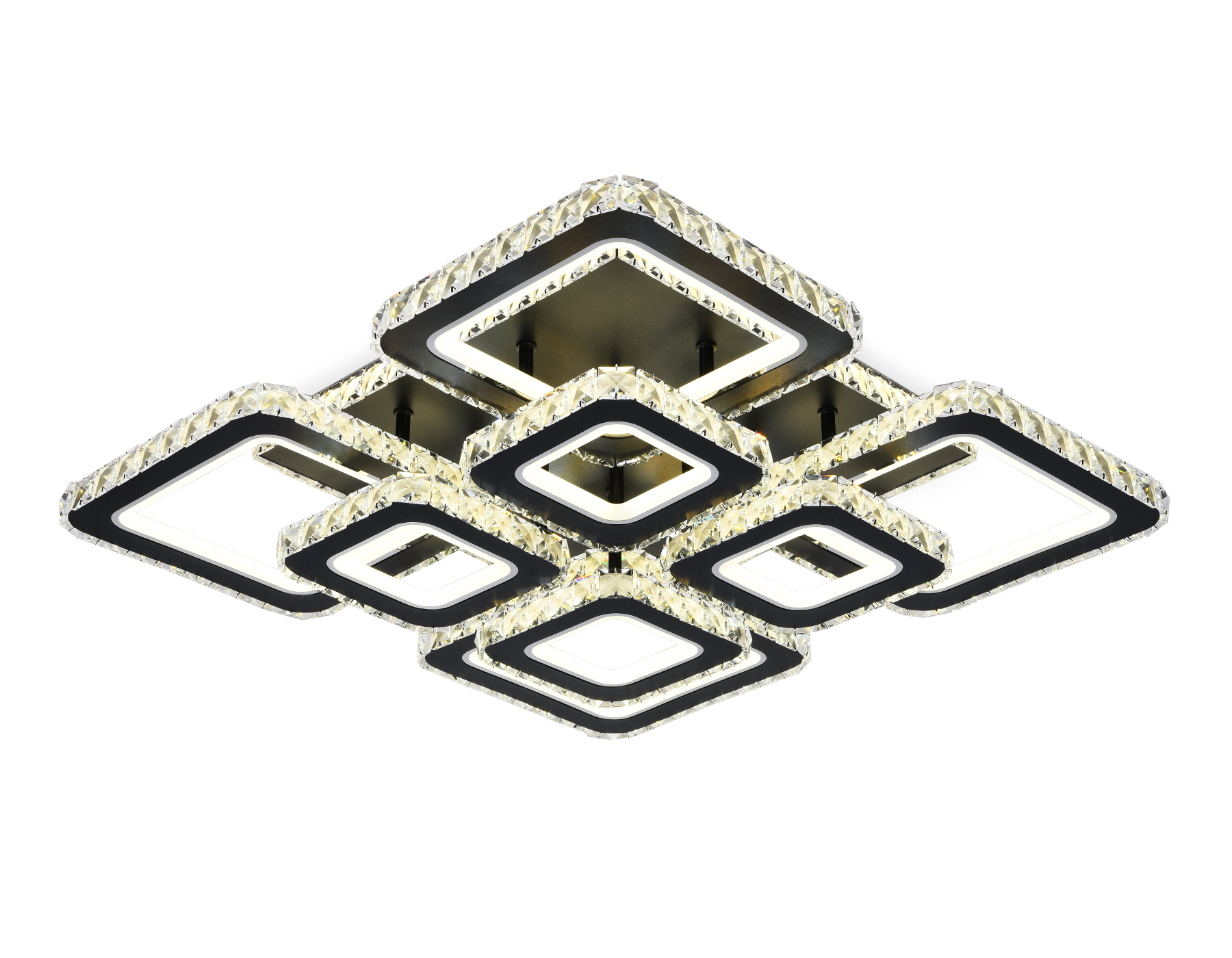 Управляемый светодиодный светильник FA1738/4+4 BK/CH черный/хром 215W 3000K/4200K/6400K 720*720*120 (ПДУ РАДИО 2.4G)